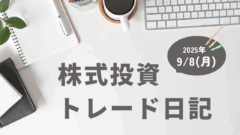 トレード日記 9/5(金)株式投資トレード日記|日々の取引記録と相場解説 日本株のスイングトレード実践記録を毎日更新。信用取引によるエントリー・利確・損切り判断を公開し、相場の振り返りと明日の戦略に役立つ情報を発信しています。 2025.09.05 トレード日記